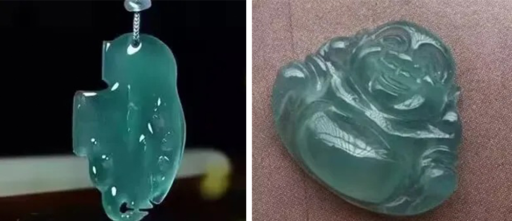 左右轉動時瓜料翡翠會出現明顯的暗域,正側面顏色差別大。